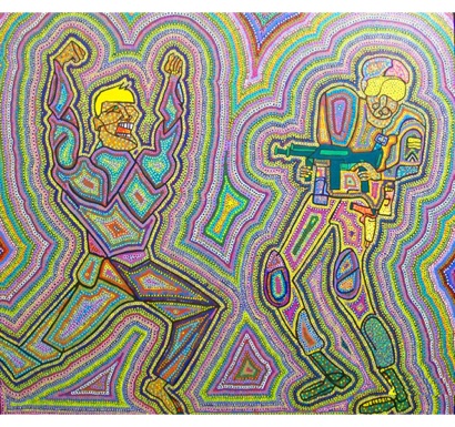 Il réalise que peindre est un moyen de transmettre ses réflexions et ses opinions au plus grand nombre sur des sujets le touchant particulièrement. Il sort ainsi du cadre de l’exil pour aborder des termes plus généraux, comme la politique internationale, l’hégémonie américaine ou la manipulation des médias.